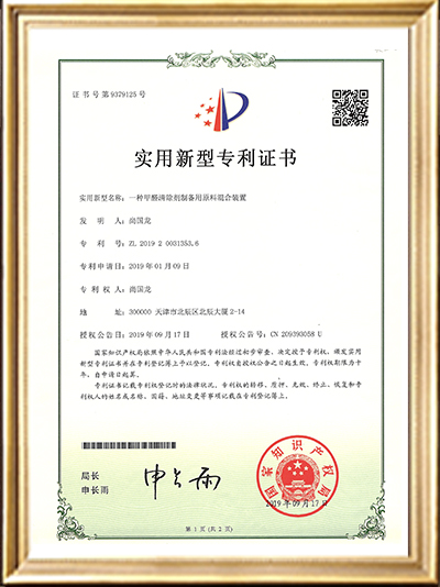 • 實用新型專利證書(一種凝膠混合裝置)