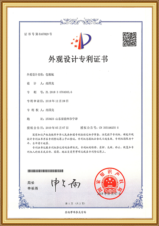 • 實用新型專利證書(一種凝膠噴涂裝置)
